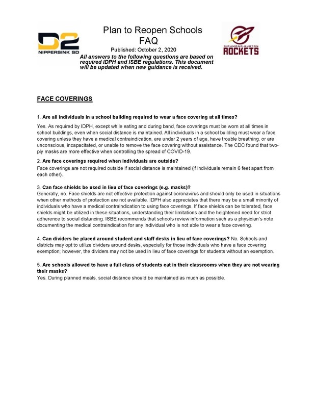 Please read our Plan to Reopen Schools FAQ sheet. This document will be updated as needed. To read the full document, please click here.